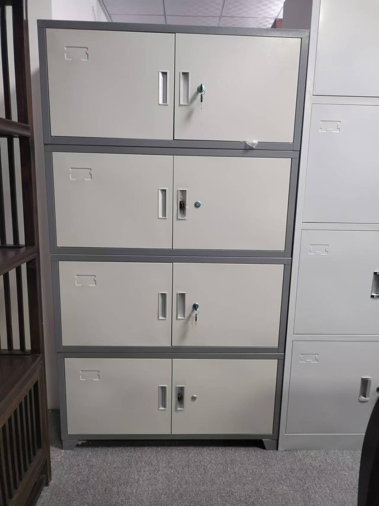 金屬文件柜:基材為0.8mm厚冷軋鋼板經(jīng)除油、防銹、磷化處理,柜體不銹蝕涂層不脫落