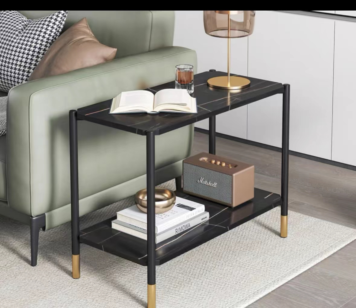黑色巖板桌面,優(yōu)質(zhì)不銹鋼茶幾架。